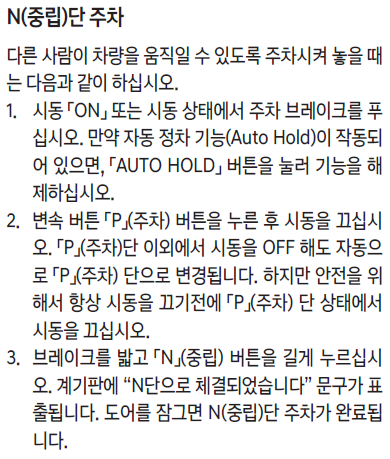 팰리세이드 취급설명서로 찾아본 중립주차 방법