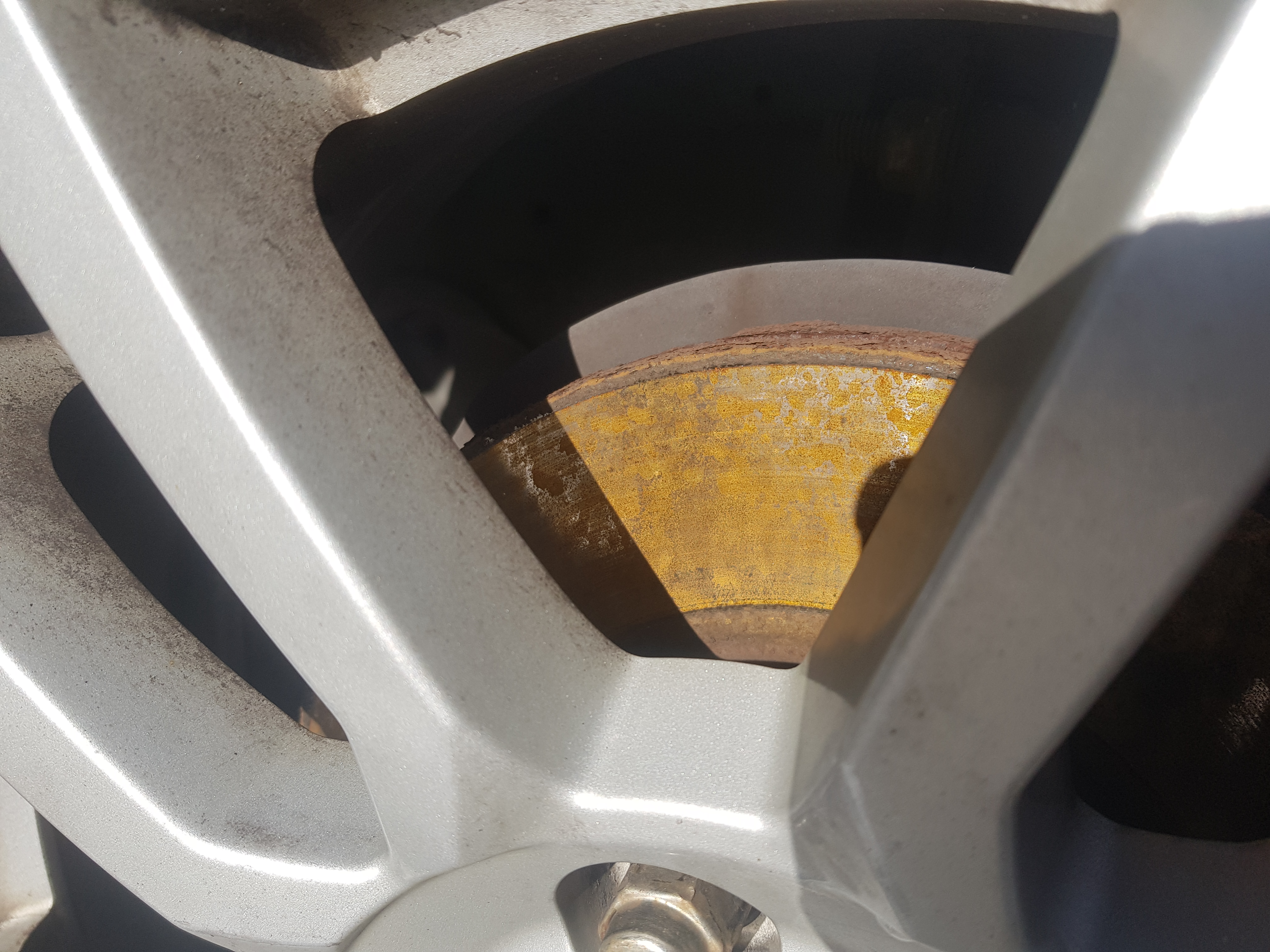아무튼 브레이크 패드로 인해 달궈지고 냉각되고를 반복하며 끊임없는 마찰에 서서히 디스크 표면도 깎여 나갈 수 밖에 없고 이 부분들이 공기와 물에 노출되어 쉽게 녹이 발생하게 됩니다.