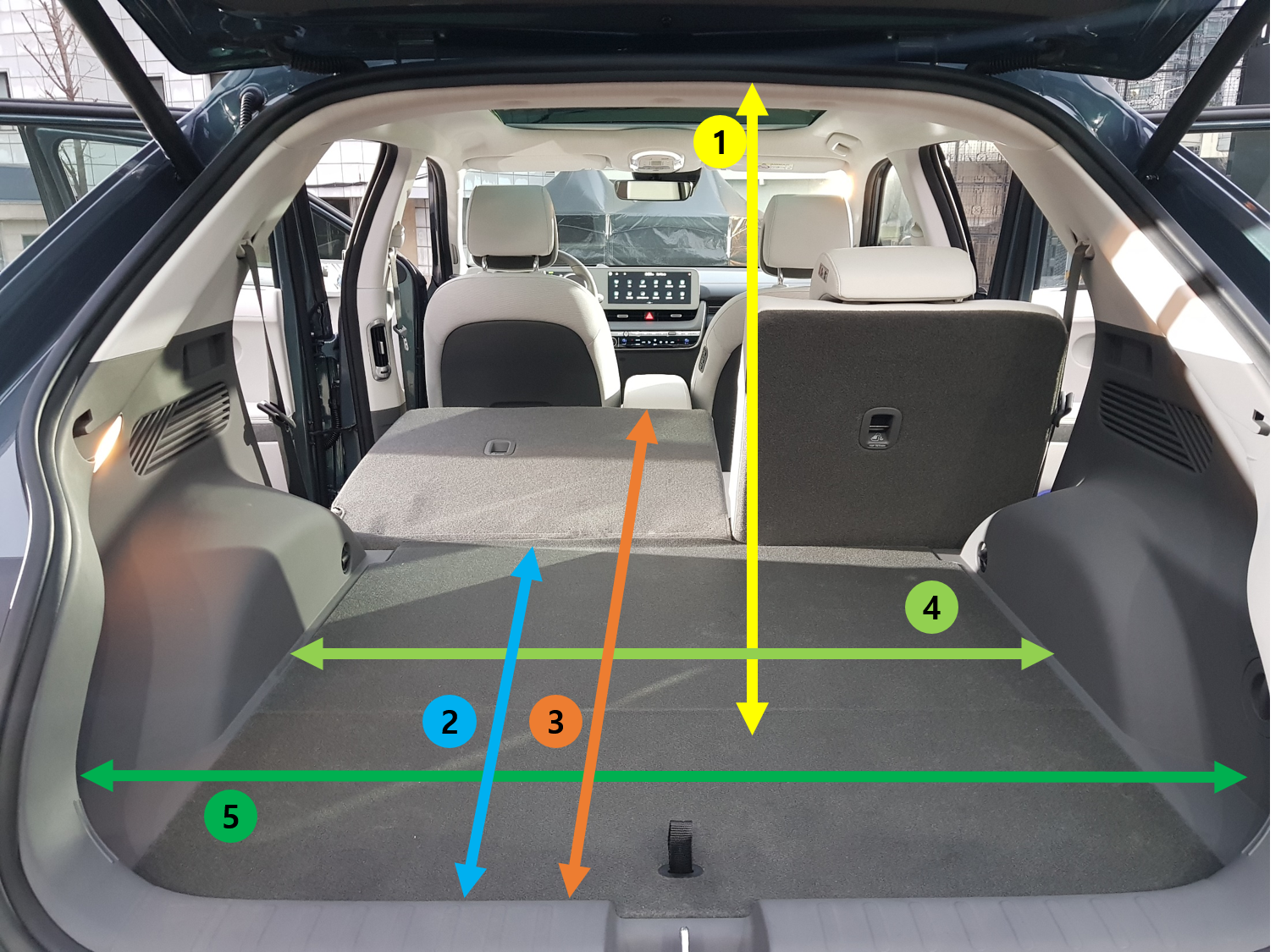 아이오닉5 적재함 실측 데이터(트렁크 너비,깊이,높이)