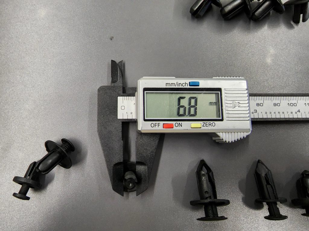 그리고 파스너의 크기도 한 번 측정을 해봤습니다. 아래사진 좌측부터 1번순으로 측정해봤으며 일단 상단의 핀을 고정하지 않은 상태로 측정을 해봤습니다.