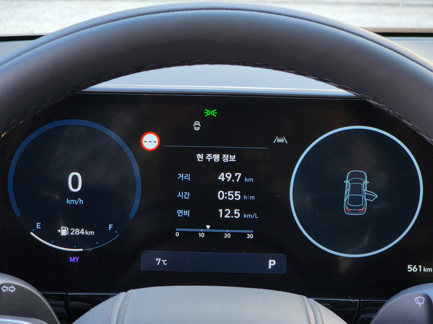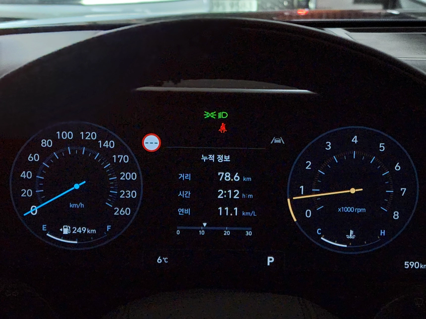 경유지에서 촬영을 위해 계속 공회전을 했고 누적 연비가 11km/L까지 떨어진 상태에서 다시 출발지로 복귀를 했습니다. 총 78.6km를 2시간 12분 동안 주행했고 최종 연비는 11.1km/L가 나왔습니다. 하이브리드나 2,000cc 이하 차량의 소유자분들에게는 갸우뚱한 연비일지 모르겠으나 3,000cc 이상을 경험해보신 분들이라면 충분한 연비라고 생각이 드실 것 같네요.