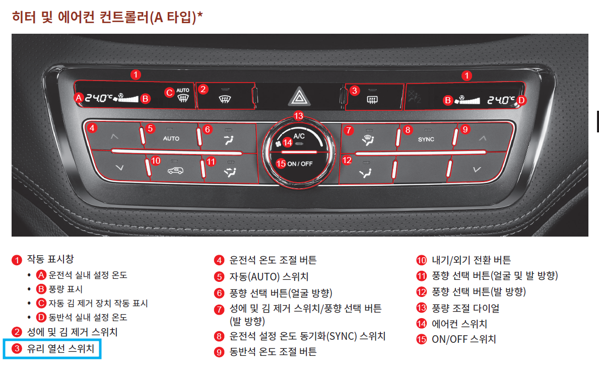 아뇨.. 우리가 할 일은 그저 버튼 찾아 한 번 누르고 잊어버리면 됩니다. 그렇다면 이건 어떻게 찾느냐? 다행히도 전세계 수많은 자동차 제조사가 있지만 이 버튼은 몇 안되는 '통일된 모양'을 가지고 있습니다. 그저 네모난 박스에 김이 모락모락 피어나는 버튼을 찾아 누르면 됩니다.
