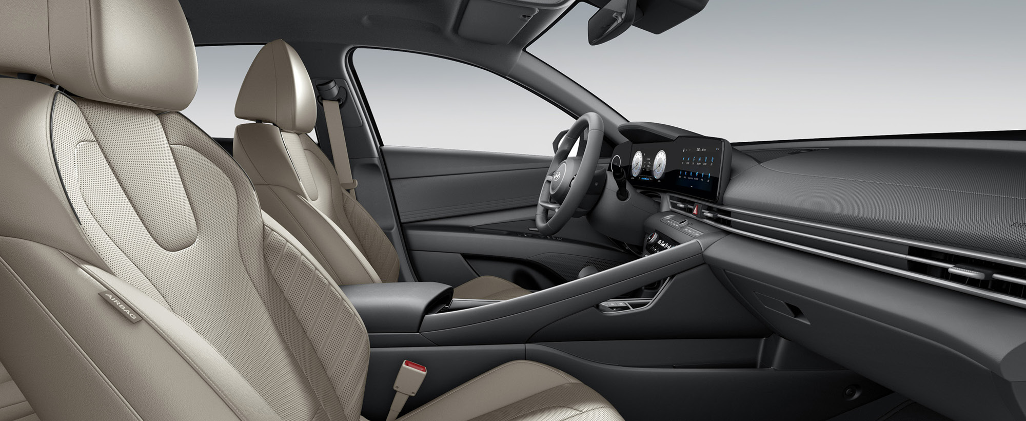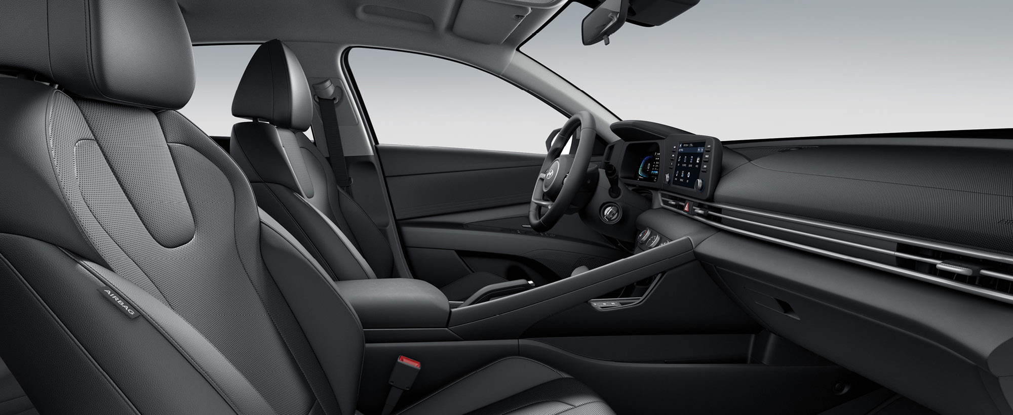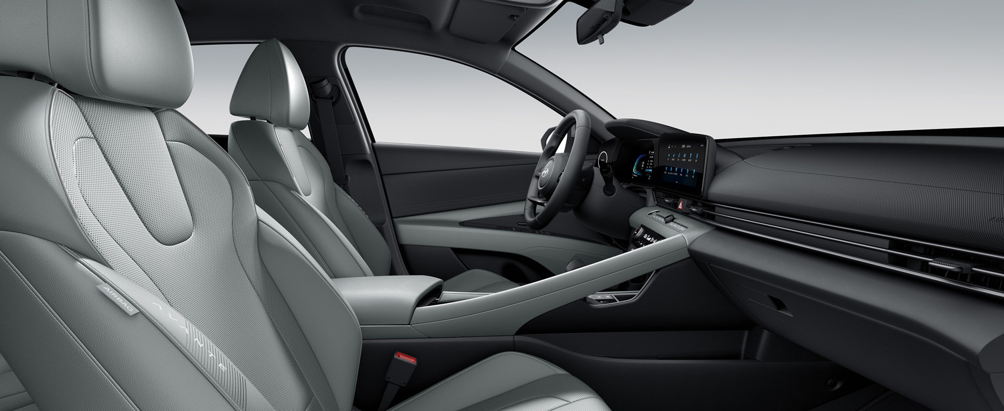 다만 더뉴아반떼에 들어가는 세이지 그린은 재질이 2가지 종류가 있습니다. 바이오 친환경 인조가죽과 천연가죽인데 다른 시트와는 다르게 볼스터에 아반떼 레터링이 들어간 것이 특징입니다. 7세대 아반떼의 레터링은 개인적으로 아주 예쁘다고 생각하기 때문에 독특한 점이 좋더군요.