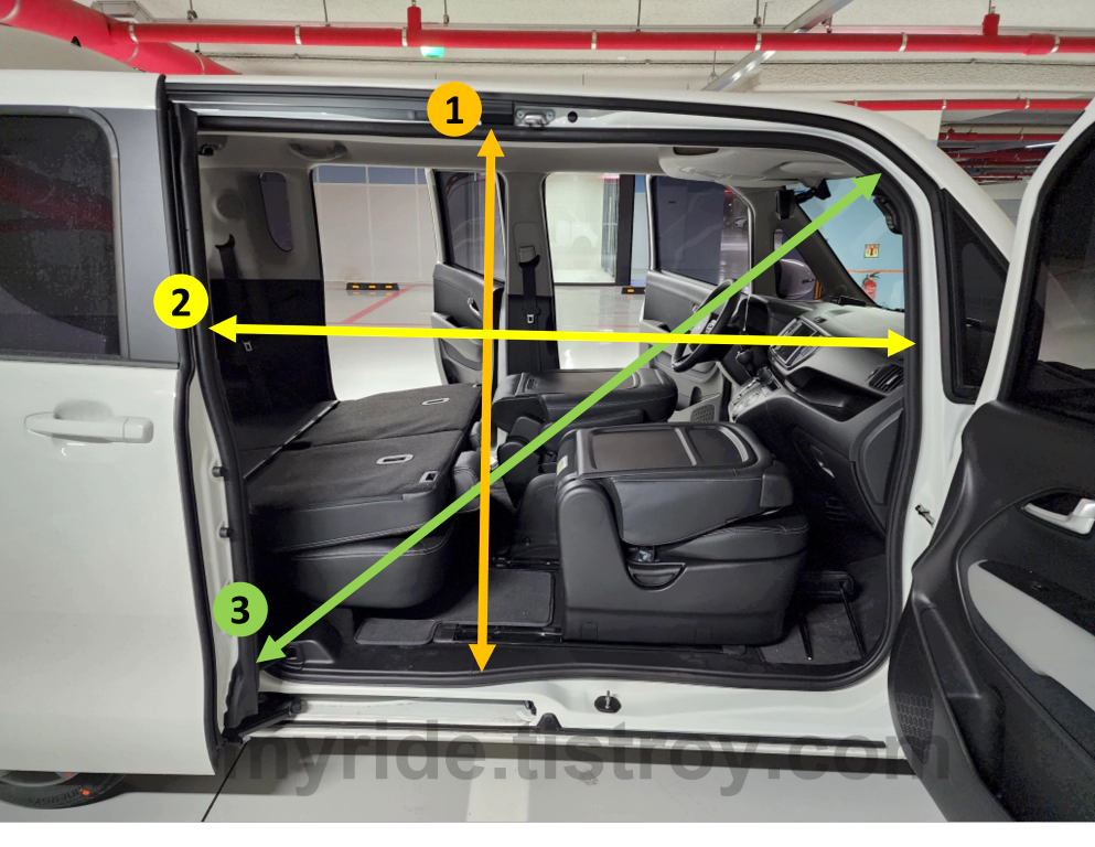 - 대각선 최대 길이(2열도어 하단부터 A필러 모서리까지) : 153cm