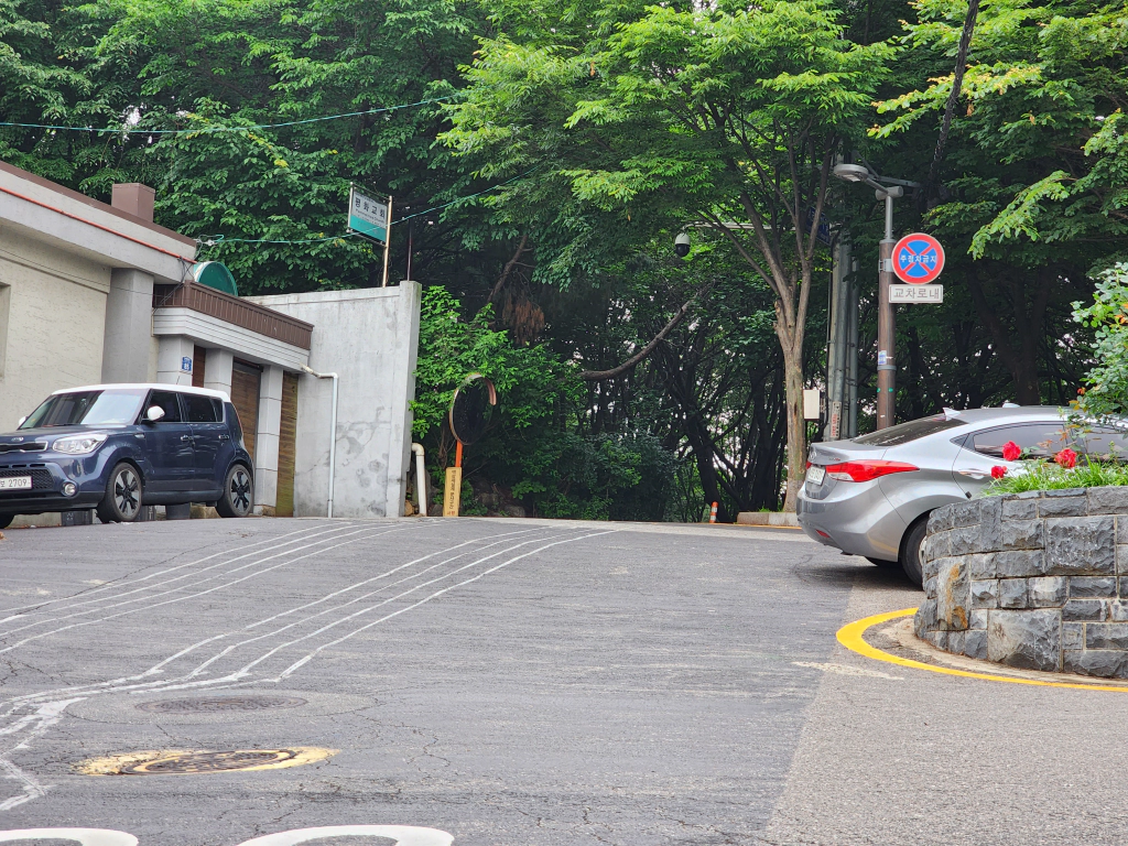 참고로 아래에서 상세한 사진을 보여드릴테지만 여기는 심지어 일반통행이 아니고 양방향 통행이 가능한 길인지라 운전이 서툴거나 차량폭에 감각이 부족한 분들에게는 그다지 권장드리고 싶은 곳은 아닙니다. 아, 다만 '도전'에 진심인 분들에게는 추천드리고 싶고, 평소 운동이 부족한 분들이라면 여기에 주차를 하는 것만으로도 체중 감량과 하체 운동이 가능하기에 '적극' 추천드리고 싶습니다.
