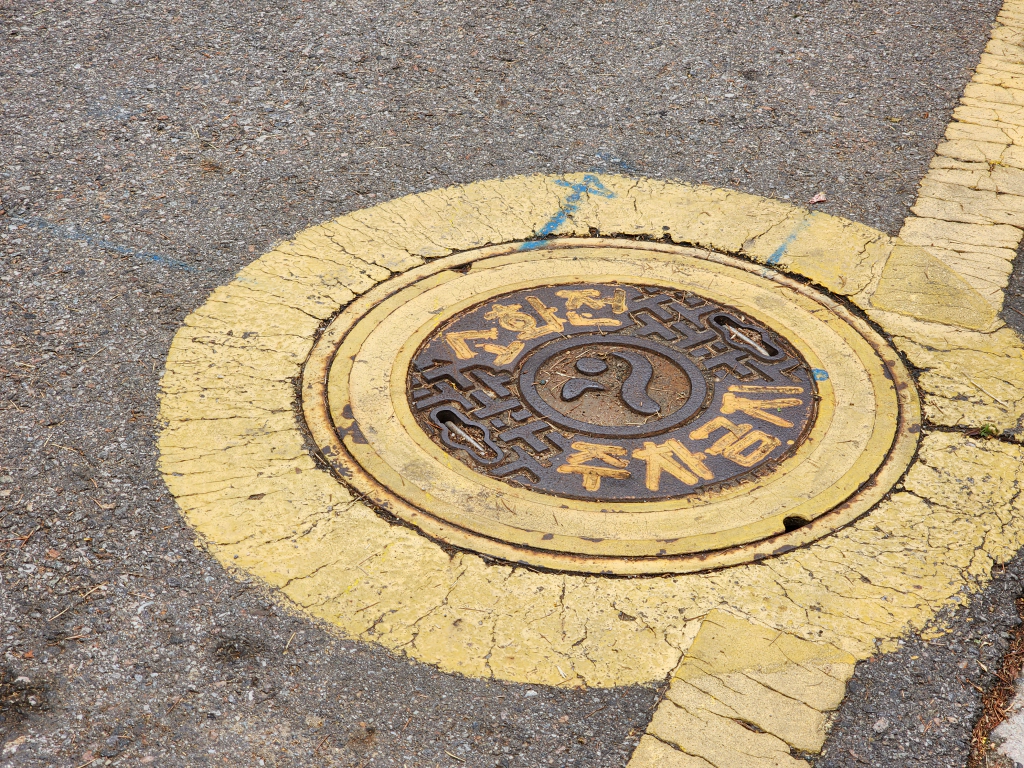 저도 제일 늦게 안 부분이 바로 노면에 깔려 있는 소화전입니다. 보통 소화전이라고 하면 당연히 건물에 있거나 건물 주변에 있을거라 생각하는데 이곳은 자동차 도로 바닥면에 있습니다. 그래서 간혹 버스 정류장도 아니고 교행구간도 아닌데 자리가 비어 있다면 바닥면을 유심히 봐야 합니다. 아래와 같이 맨홀 뚜껑처럼 생긴 '소화전'이 보인다면 절대 주차해서는 안됩니다.