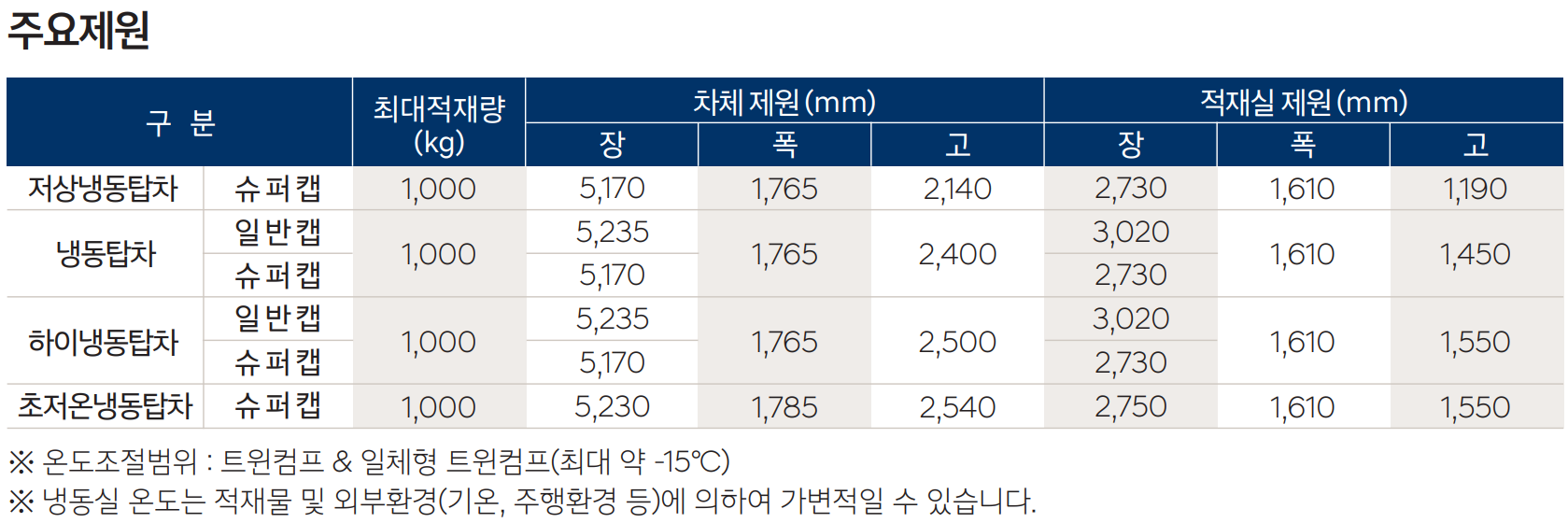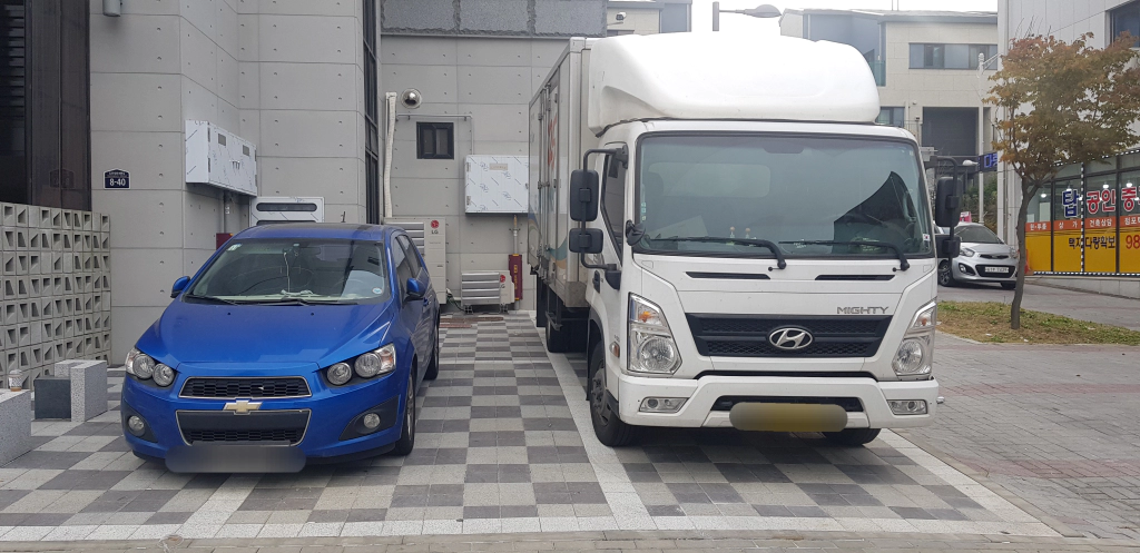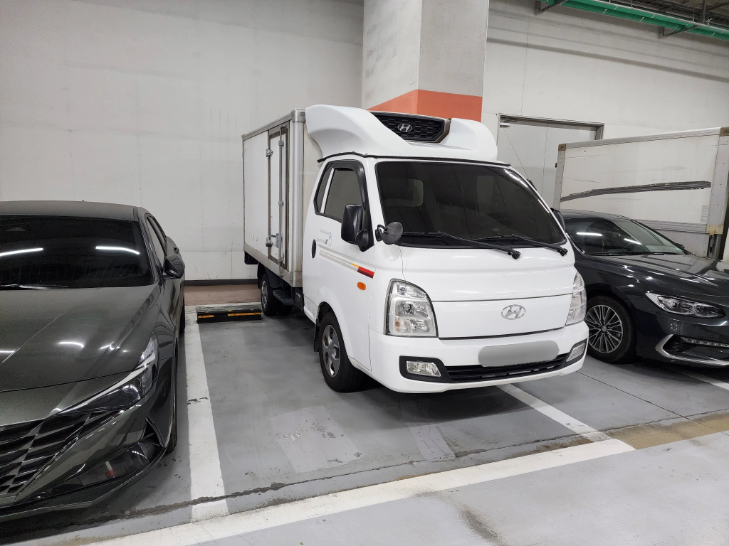 여기서 특징 하나가 있는데 현대와 기아의 냉동탑차의 탑 사이즈가 조금 다르다는 겁니다. 기아의 것이 조금 더 넓은 대신 차량의 전고도 더 높기 때문에 구입 전 반드시 주차장 환경을 체크하셔야 합니다. 대부분의 주차장의 전고는 낮게는 2리터30cm에서 일반적으로는 2미터40cm를 기준으로 설계하기 때문에 단 몇 cm 때문에 차량이 무용지물이 될 수 있습니다.