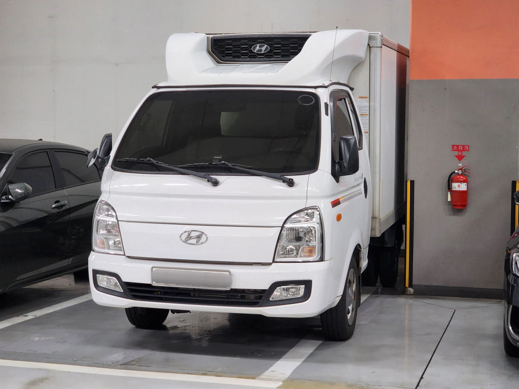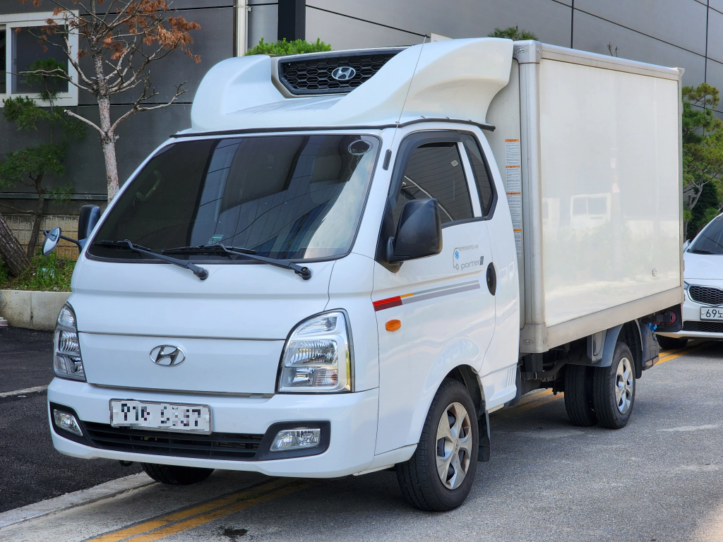 시승 차량은 2019년형 포터2 냉동탑차로 누적 주행거리 11만km 자동변속기 차량입니다. 간혹 개방형 적재함을 가진 카고 모델에서 구조 변경을 통해 탑을 올리는 경우도 있지만 이 차량은 출고부터 이미 냉동기와 탑이 들어간 차량입니다.