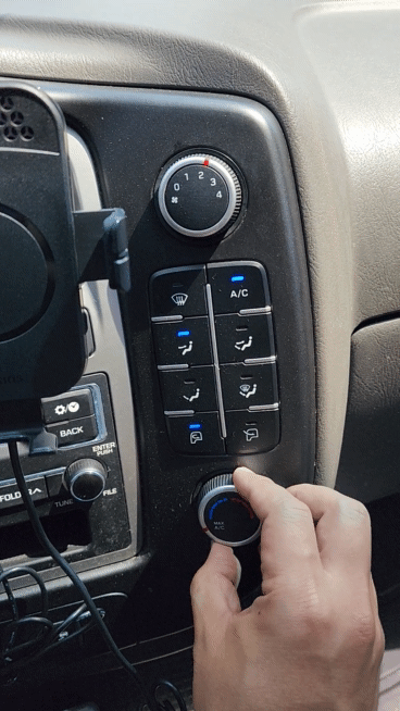 마지막으로 아주 중요한 팁하나 드리고 주행 소감으로 넘어가겠습니다. 아래와 같이 현대/기아의 수동 공조기의 경우 지금처럼 무더운 여름엔 나도 모르게 온도 다이얼을 좌측 끝까지 돌리게 됩니다. 그런데 자세히 보면 'MAX A/C'라고 쓰여 있는 걸 볼 수 있는데 다이얼을 끝까지 돌리면 최단시간 내에 최고의 냉방성능을 내기 위해 '외기순환'에서 '내기순환'으로 자동으로 변경이 됩니다.