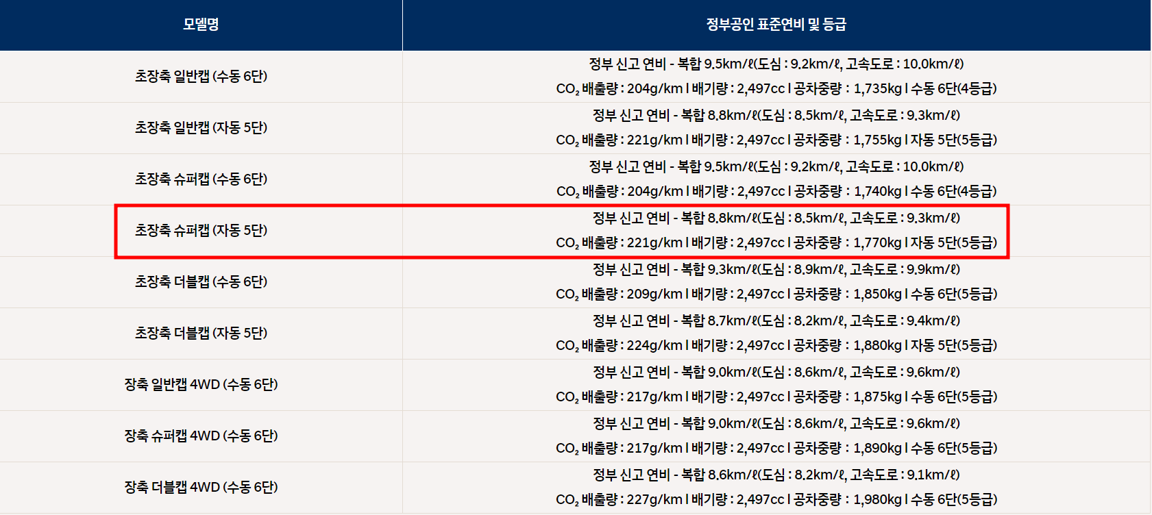 엔진은 모두 2.5리터 디젤 엔진이 들어가 있는데 이 엔진이 과거 스타렉스와 공유했던 A형 엔진입니다. 꽤나 오래된 엔진이라 최신의 엔진들과 비교해보면 출력과 연비 모두 아쉬울지 모르겠지만 오랜 역사만큼이나 내구성이 검증되었고 수리도 아주 쉬운 편이고 결정적으로 가격에 민감한 상용차다보니 어쩔 수 없는 구성이 아닌가 합니다.