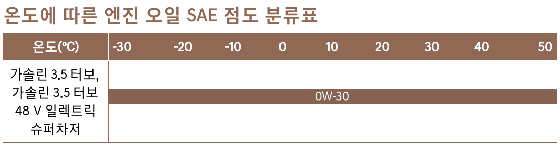 - 엔진오일 규격 : API SN PLUS/SP or ILSAC GF-6