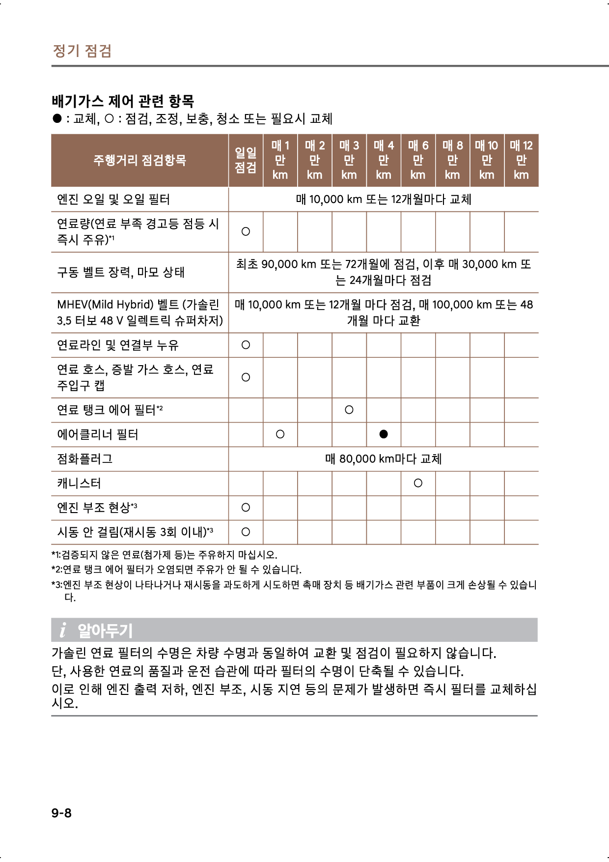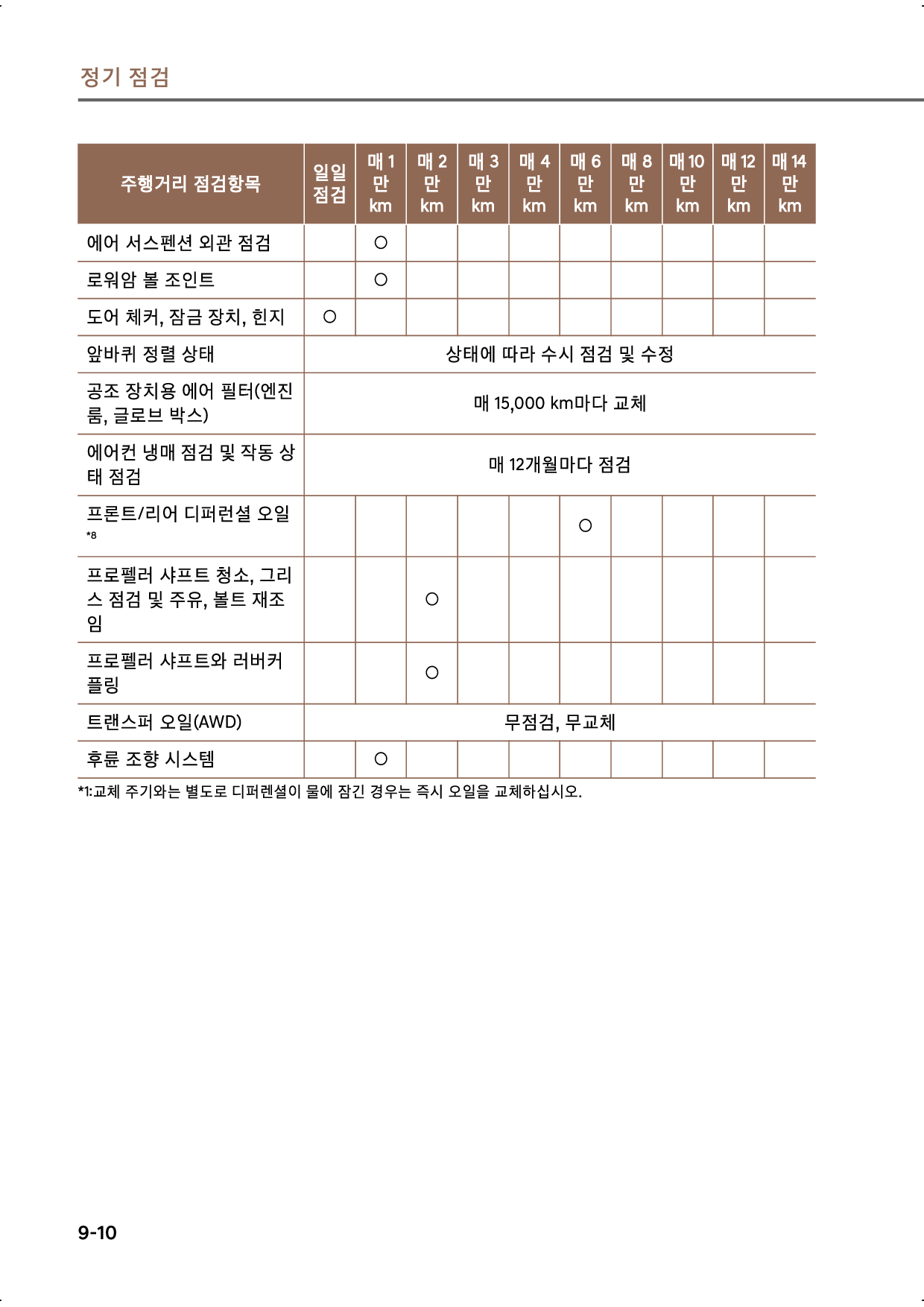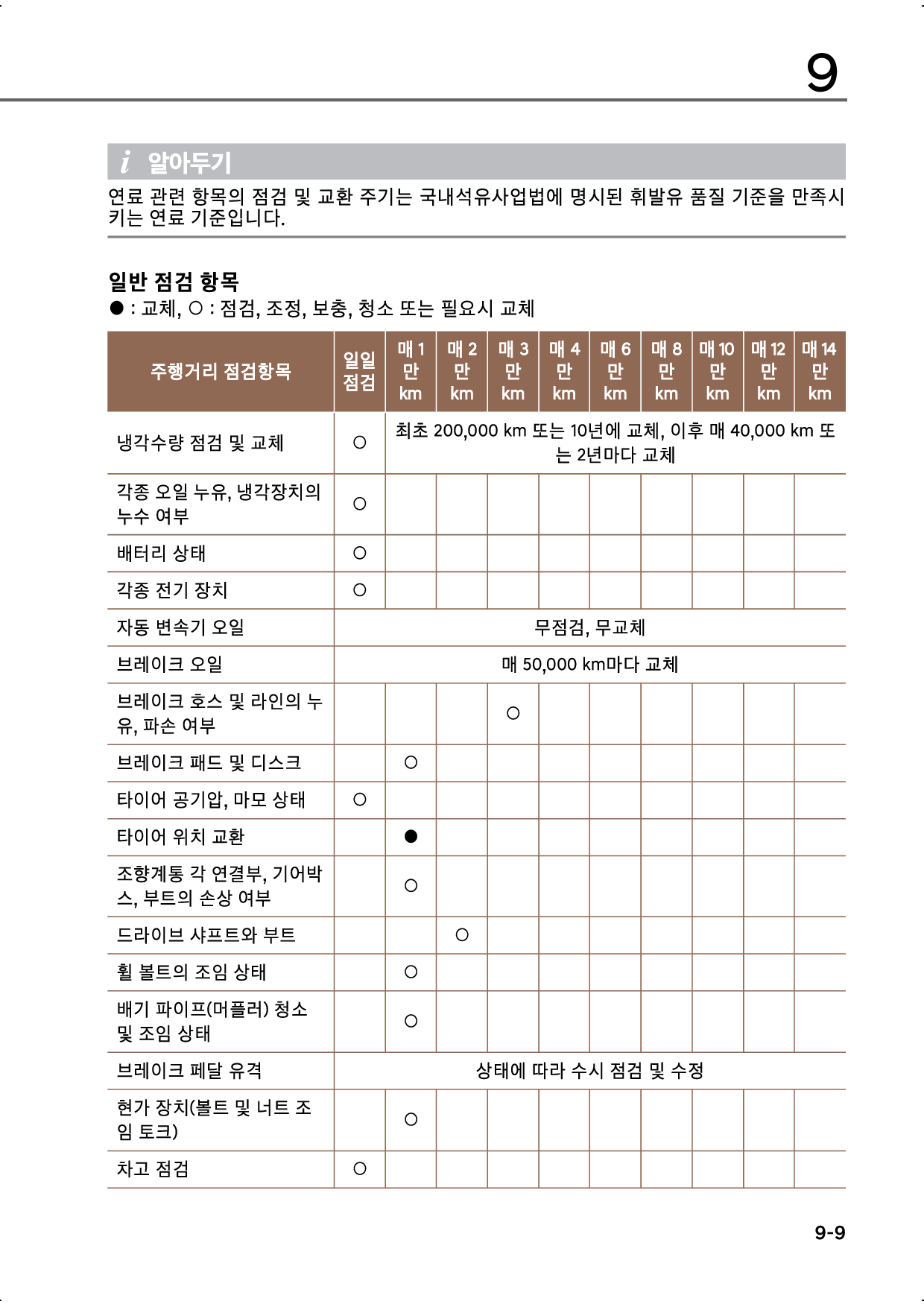 - 통상 조건 : 매 10,000km 또는 12개월마다 교체