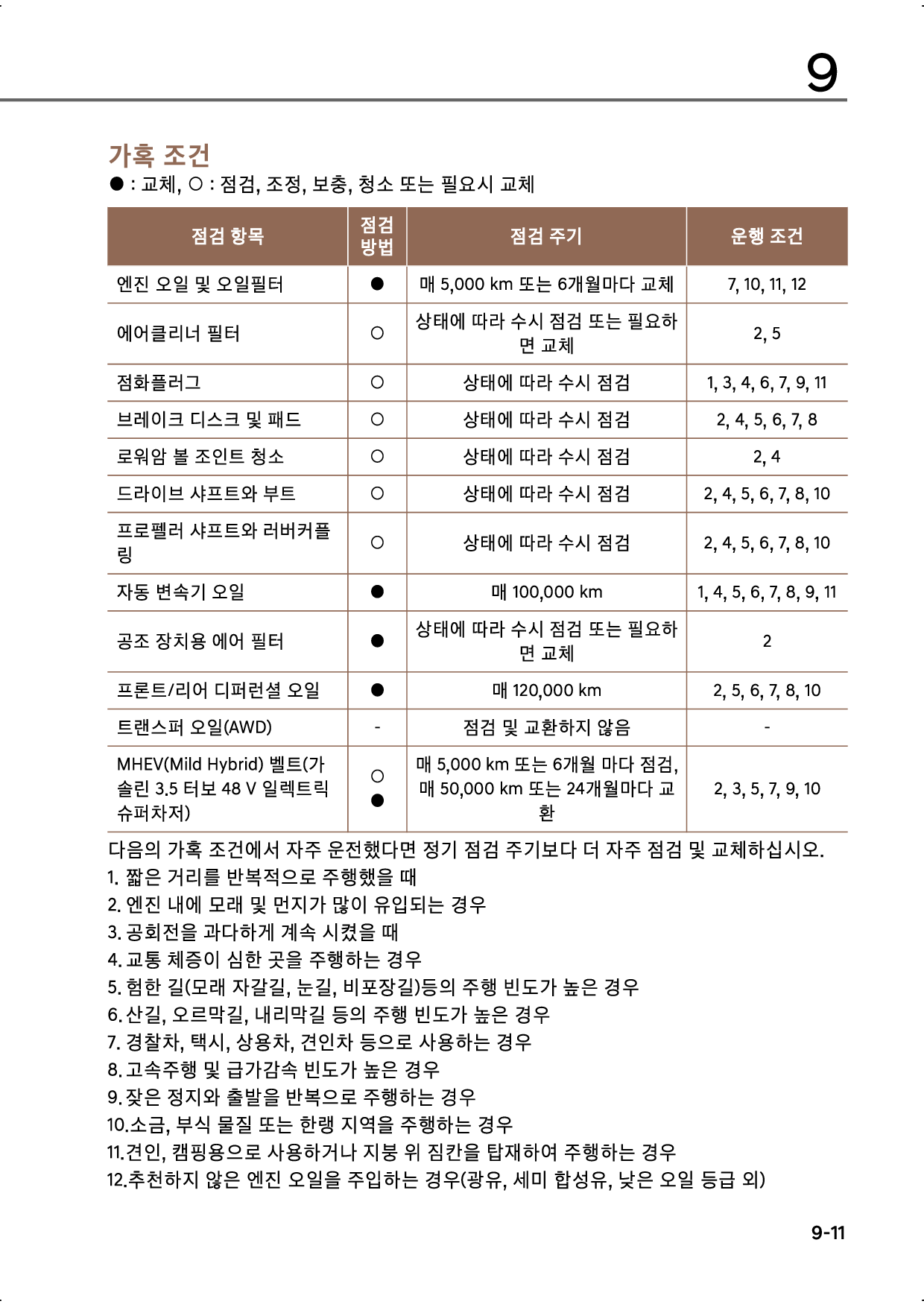 - 가혹 조건 : 매 5,000km 또는 6개월마다 교체