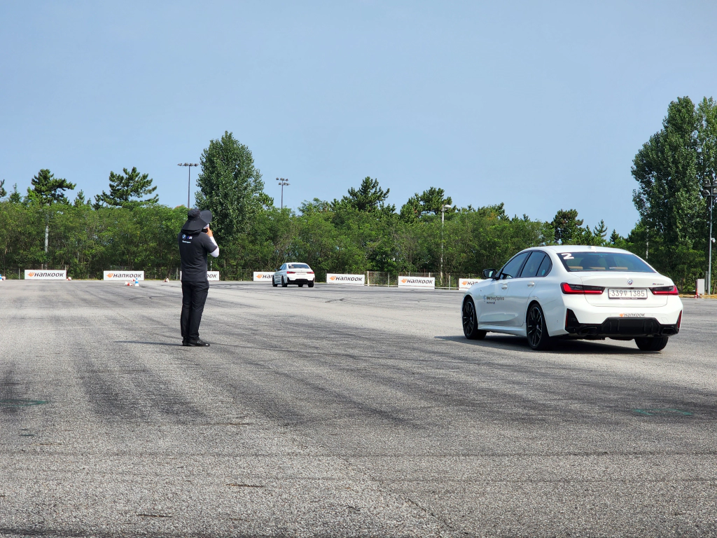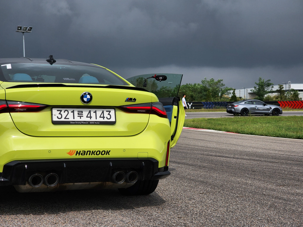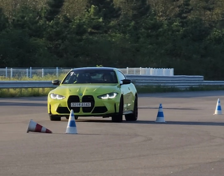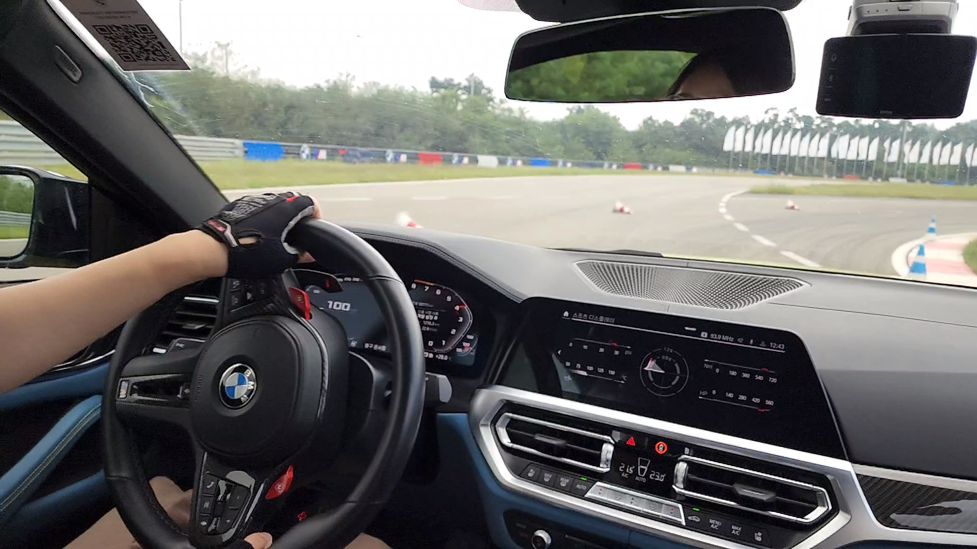 분명히 동일한 교장인데 스타터팩에서 경험한 M340i는 가속 후 감속할 때 제동거리가 충분했지만 M4 컴페티션은 다르다. 두 차량 간 출력 차이가 확실하다보니 도달 속도가 훨씬 높아 제동거리도 많이 필요하다는 것이다. 그거 생각 안하고 냅다 때려 밟으면 펜스와 하이파이브 할 수 있겠다.