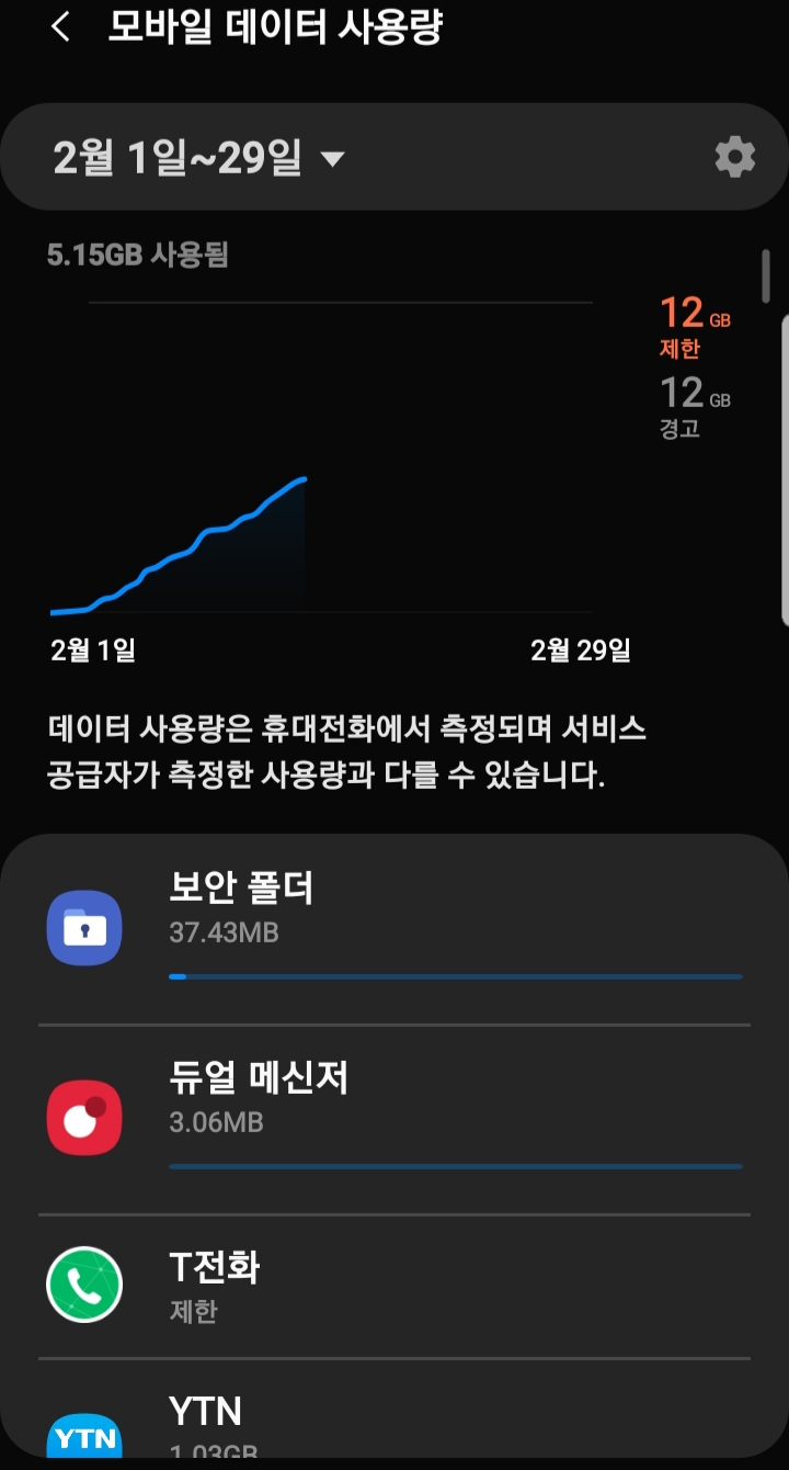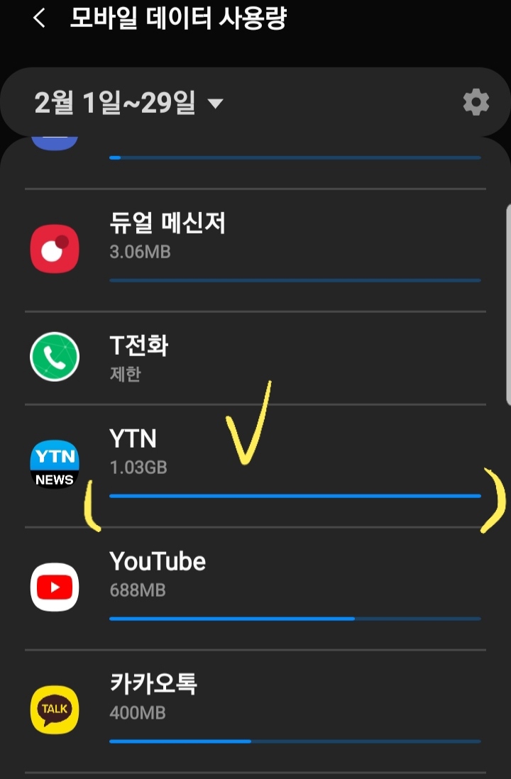 이들 중 어떤 앱이 데이터를 많이 사용하는지 확인이 가능하구요.