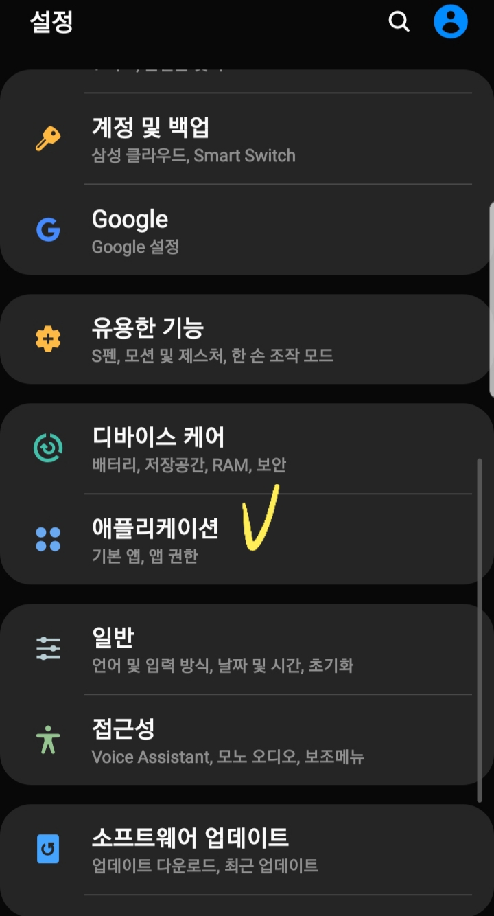 애플리케이션을 누르면 설치된 앱들 목록이 나옵니다.