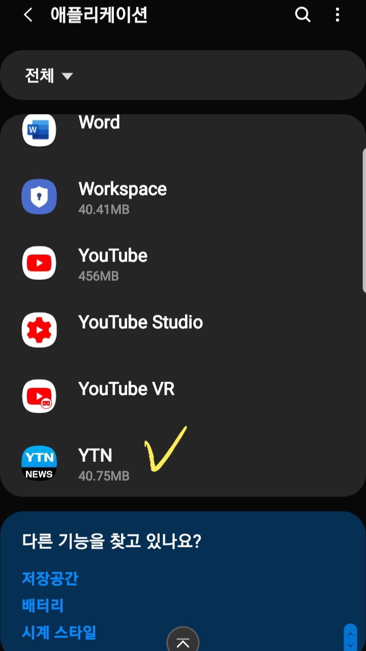 이 중 삭제를 하고싶은 앱 이름을 찾아봅시다.
