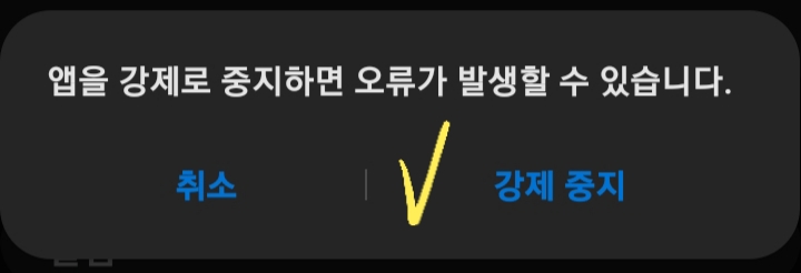 쫄지말고 시원하게 강제중지를 눌러줍니다.