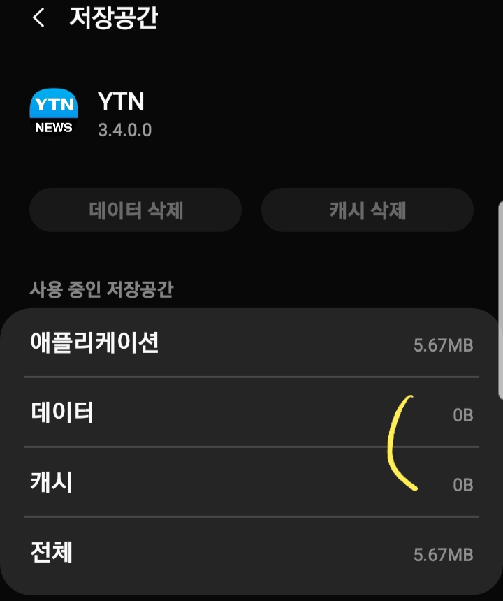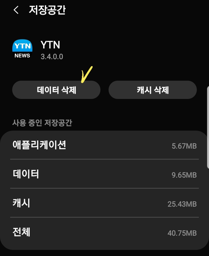 눌러주면 캐시를 포함한 데이터가 한 번에 삭제됩니다.