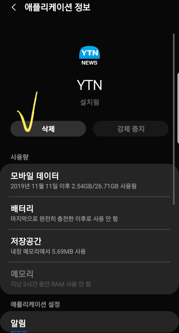 다른 앱들도 마찬가지로 삭제를 하고싶을 때