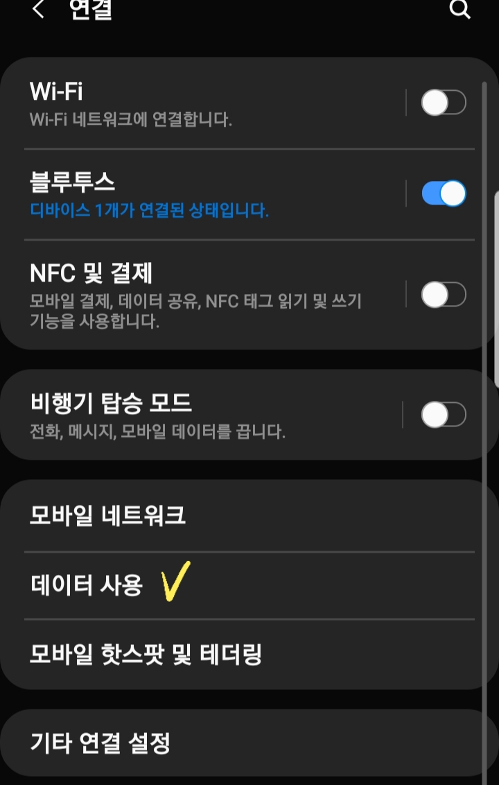 이 중에서 "모바일 데이터 사용량"을 눌러줍니다.